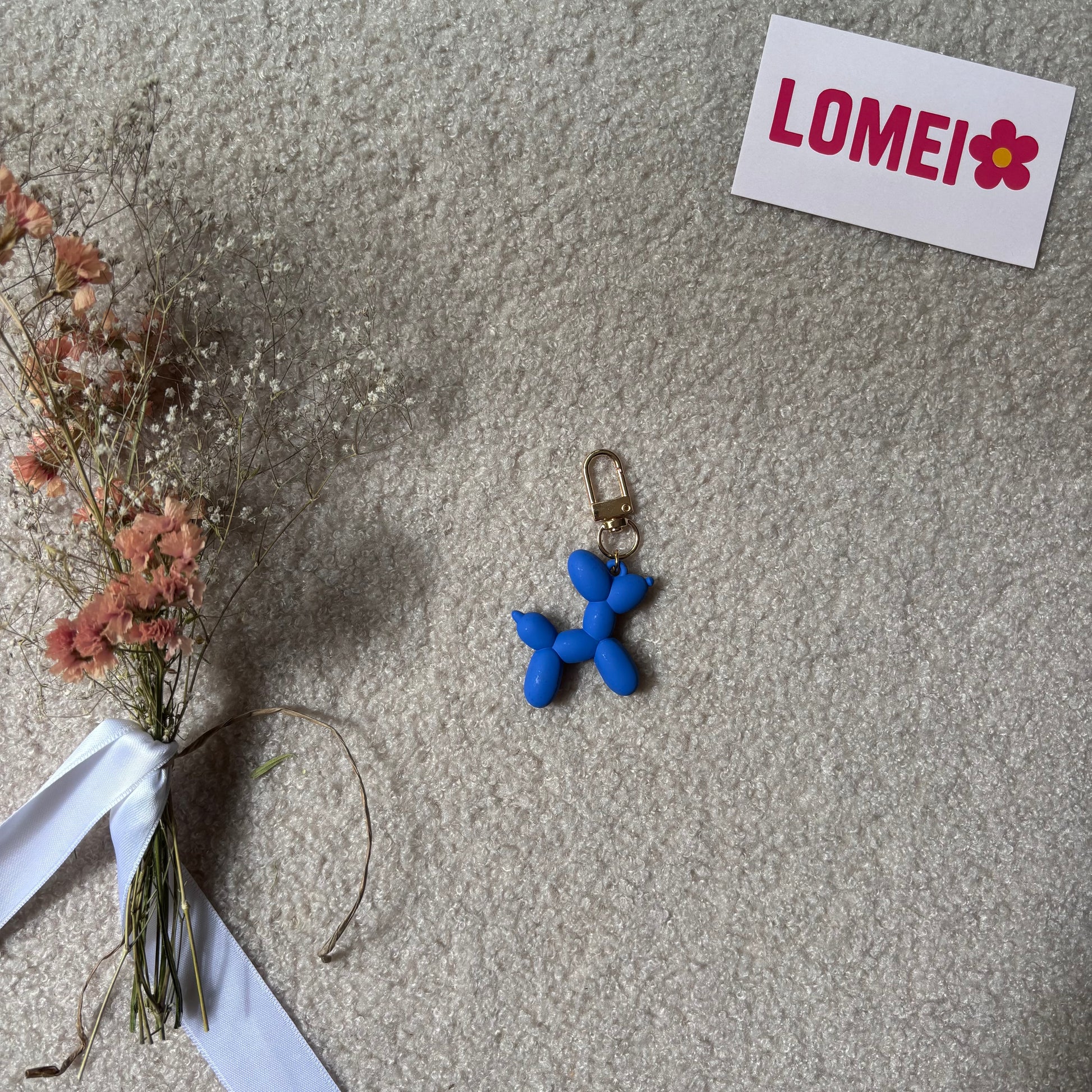 Chien bleu effet ballon avec bouclerie or